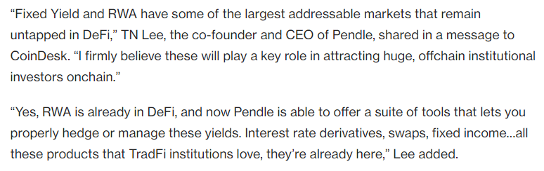 As a yield derivative protocol, Pendle is bringing the TradFi interest derivative market (worth over $400T in notional value) into DeFi.