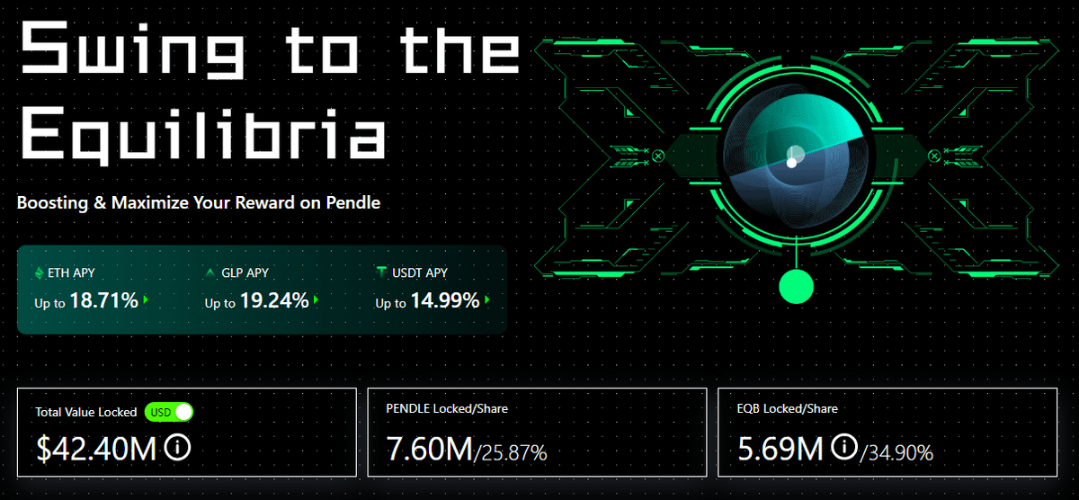 By locking up $EQB, users can earn a share of the protocol revenue in the form of $ePENDLE and extra rewards.