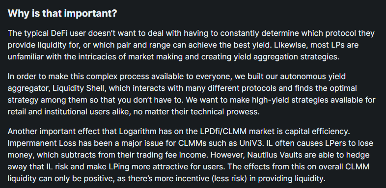 Logarithm's aim is to create a one-stop liquidity management layer on top of LP-centric protocols