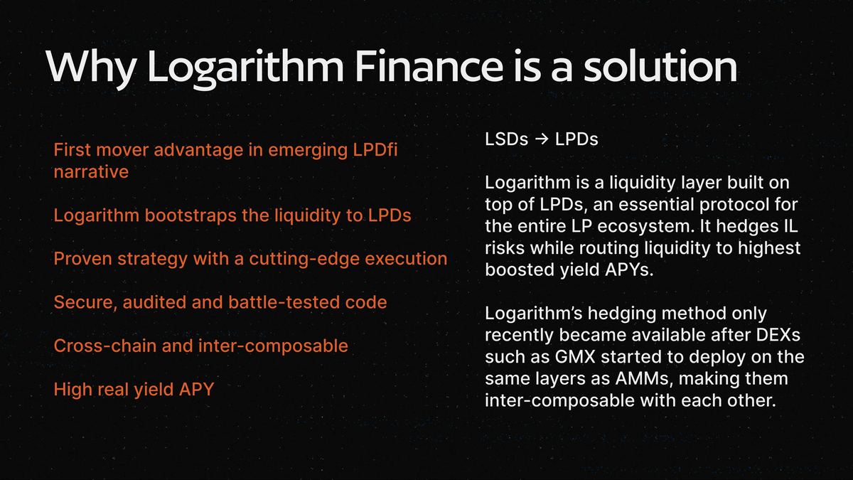 Logarithm is a Liquidity layer for LPDs with perpetual delta-neutral strategies built to achieve the highest available capital efficiency on the market.