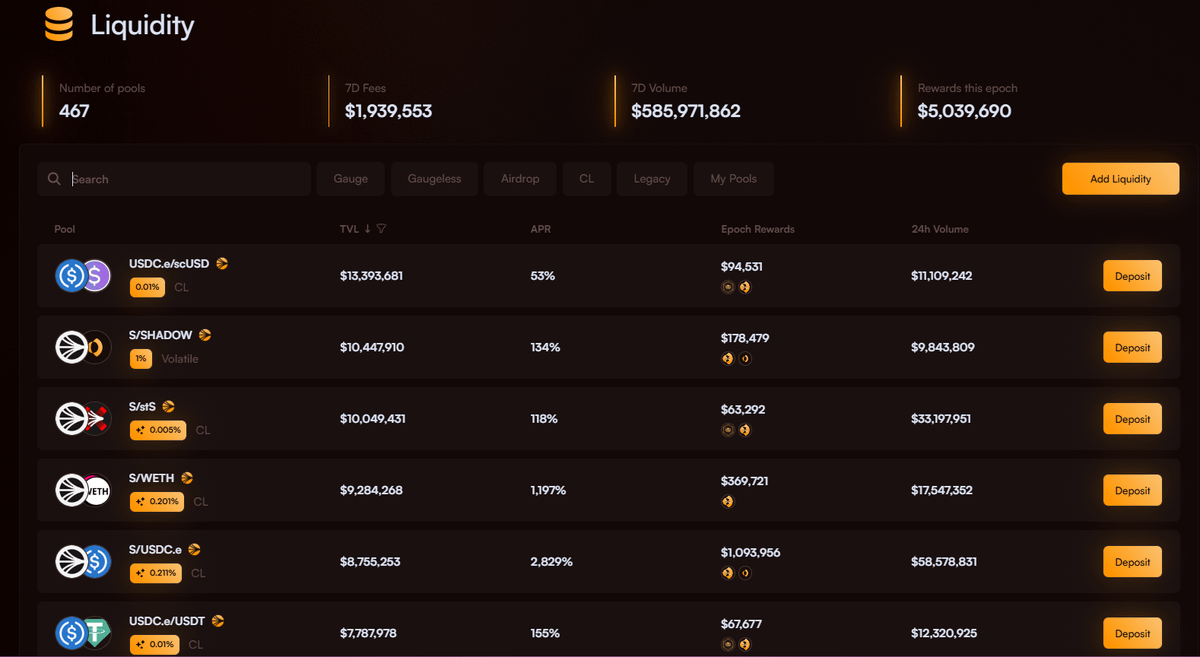 You have many pools with great yield on @ShadowOnSonic