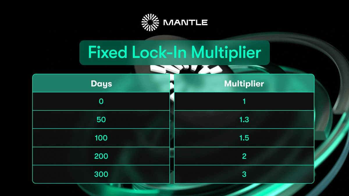 Hereās how it works: The longer you lock your $MNT, the higher your MP multiplier, giving you a larger share of the pool. Perfect for those committed to Mantleās future.
