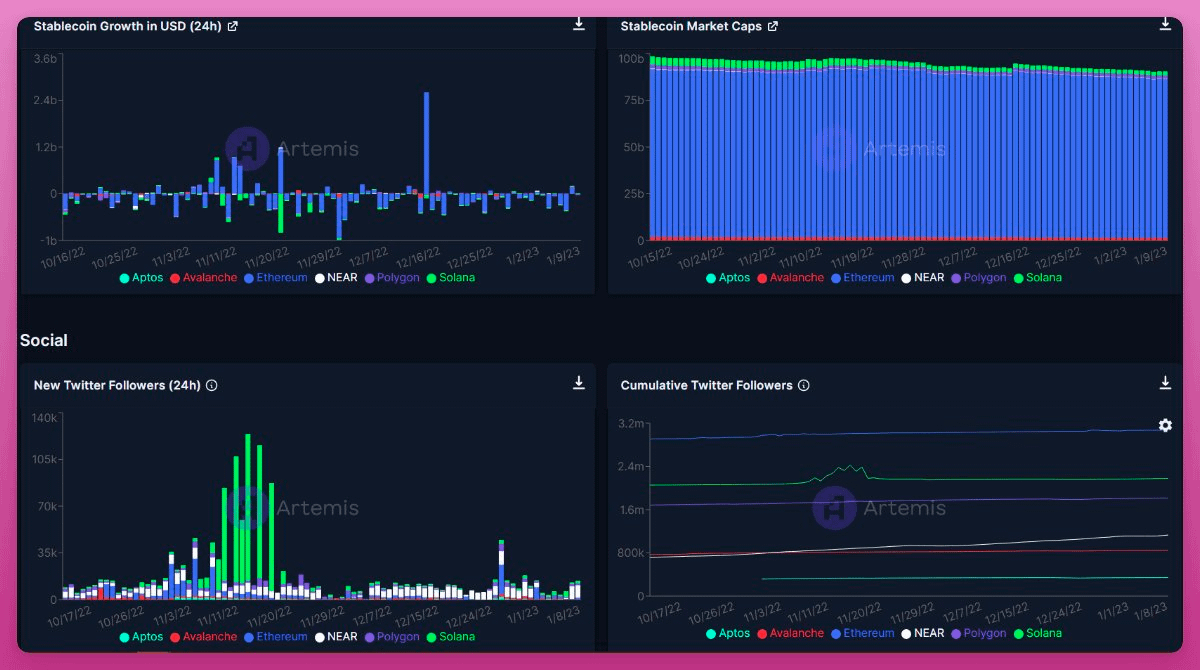 提供了一些重要的加密貨幣相關指標: • 開發者指標 • L1 基礎指標 • 每日活躍用戶 • 社交媒體數據等 甚至您可以將數據匯出至 Google 表格