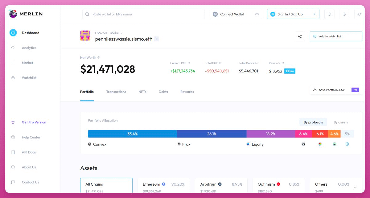 投資組合,並且顯示您當前和已實現的損益。 這種清晰的損益分析有助於幫你找到 DeFi 中最賺錢的策略