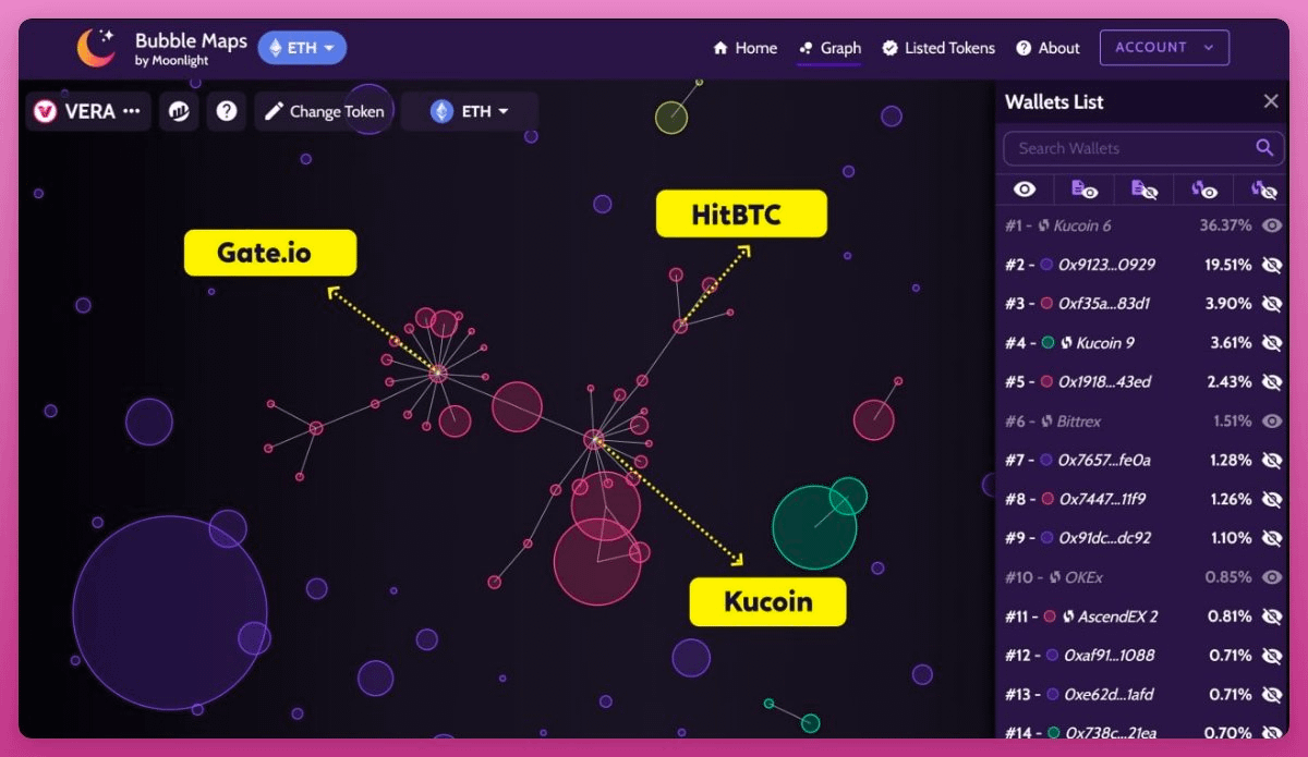 幫助你關注代幣/NFT 持有者的操作,並透過不同顏色的泡泡得到進一步洞察。 泡泡大小代表代幣/NFT 的規模大小;白線則連接到相關錢包地址