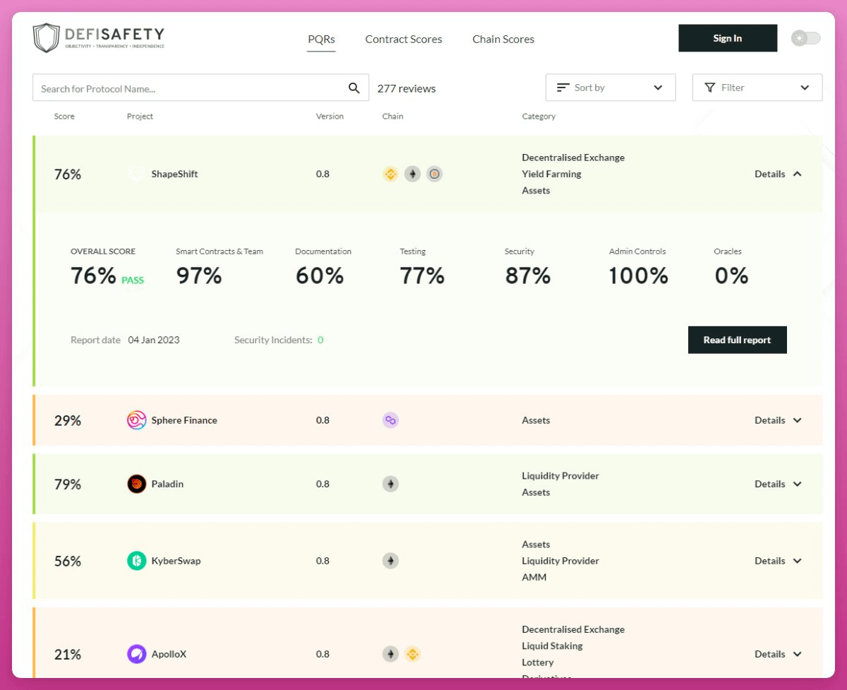 可以幫助我們審視協議,它為每一項協議提供安全評分 有數據支撐,比只是簡單審計還更具有參考價值。 在你 ape in 你所有畢生積蓄之前可以檢查一下