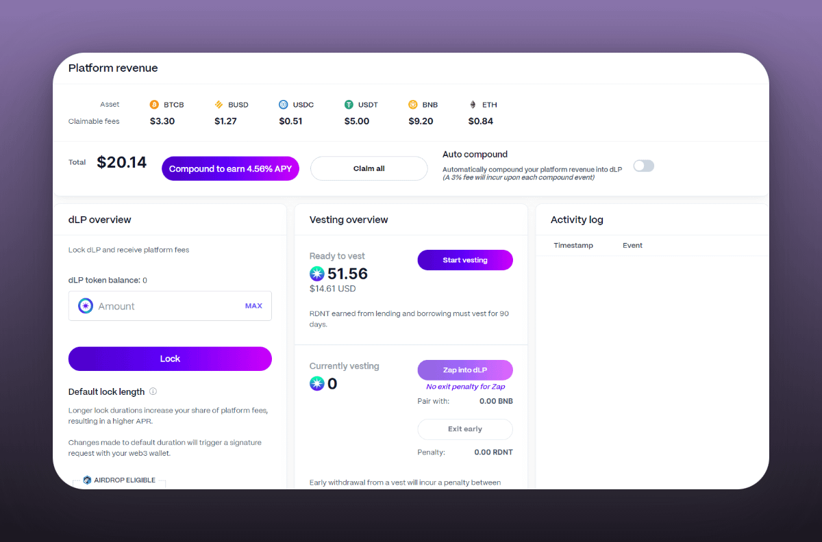 ๐ By regularly compounding your RDNT into dLP, you can enhance your earnings and maximize the benefits of participating in the Radiant protocol.