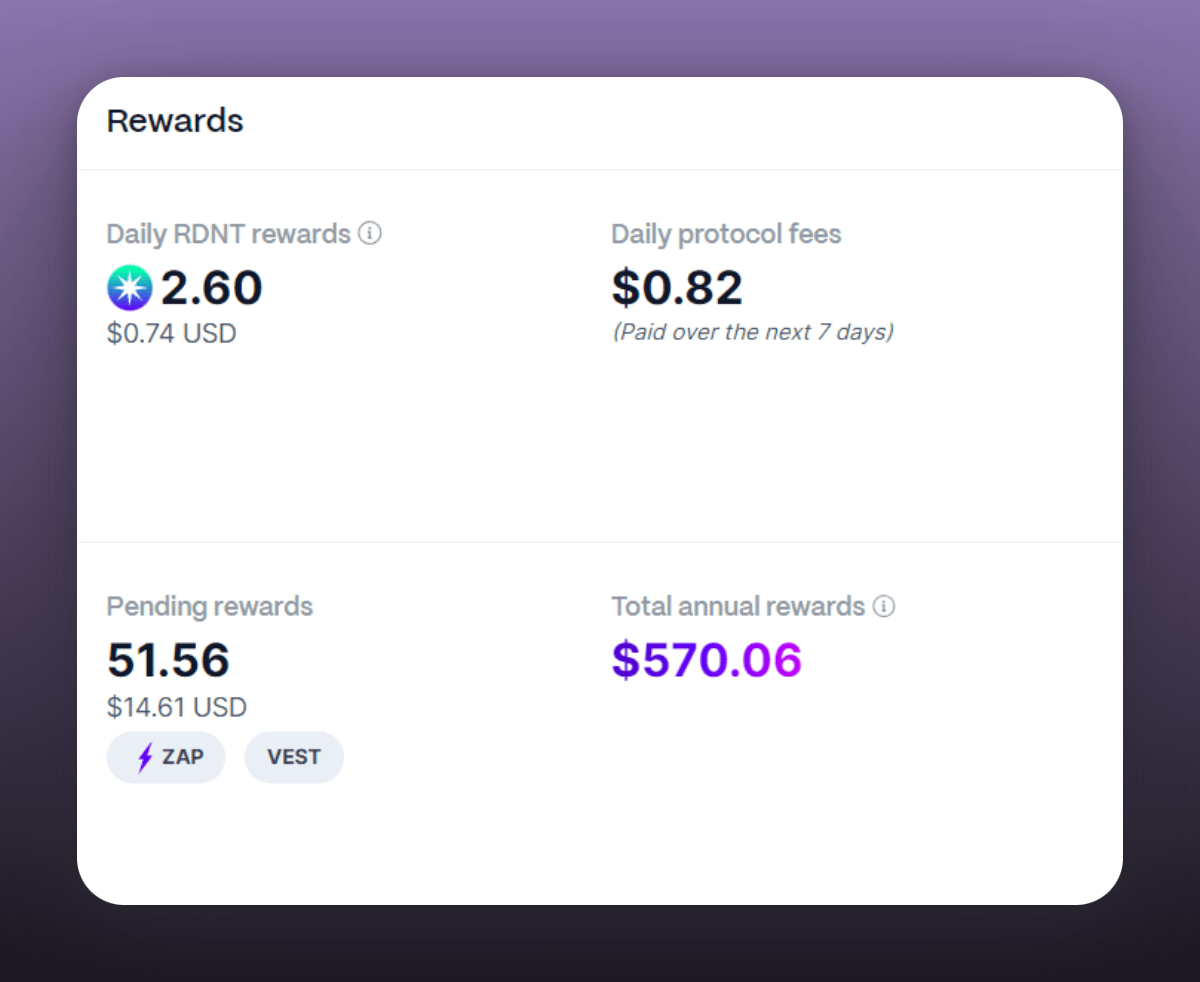 RDNT rewards : $271.24 USD