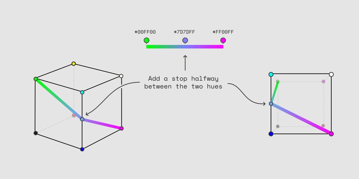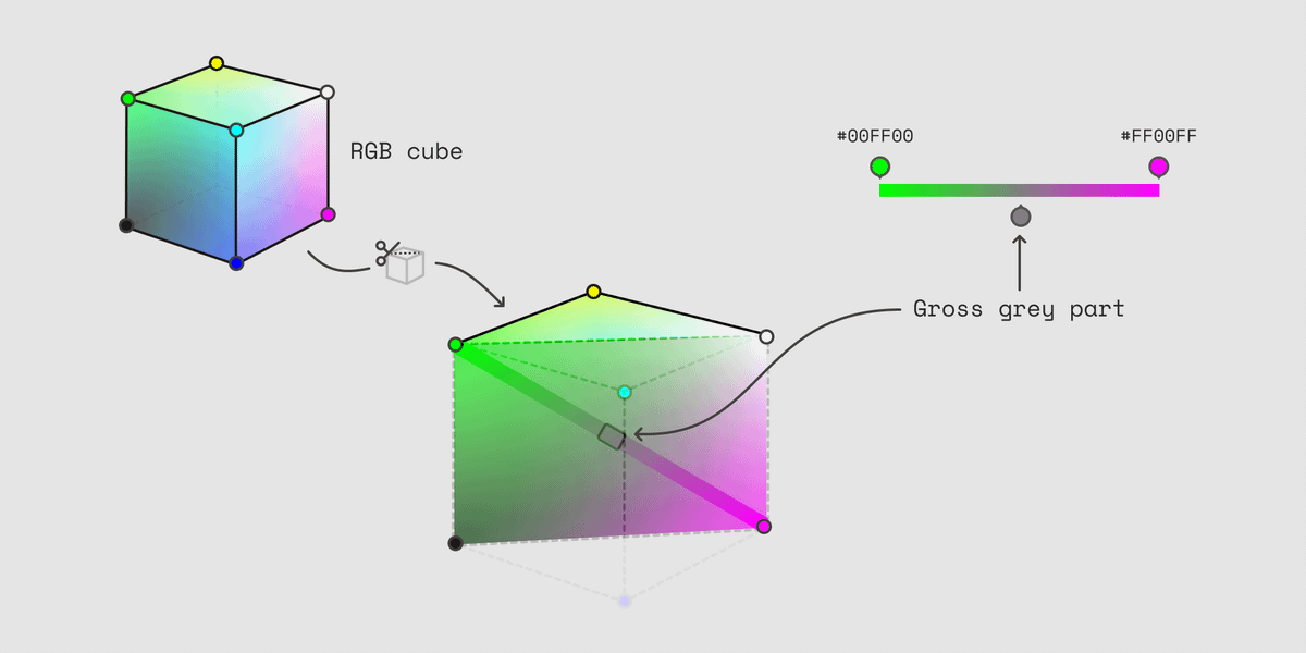 If you visualise the color model in 3D, you can see that this happens when a gradient needs to pass through grey.