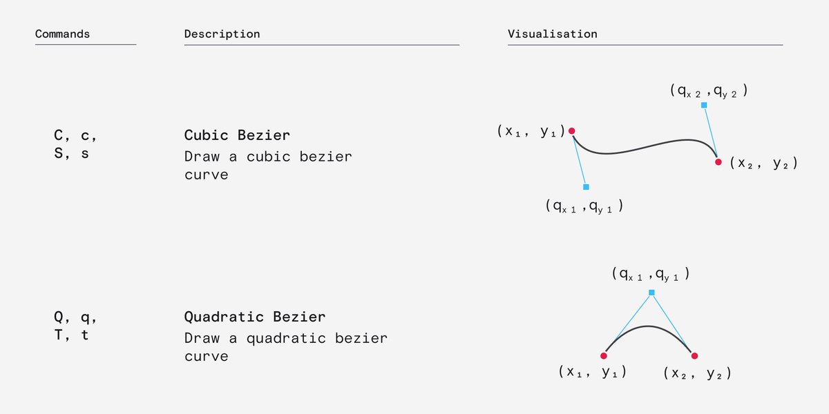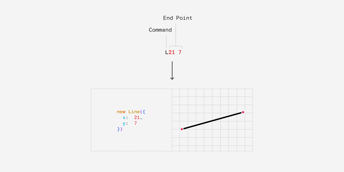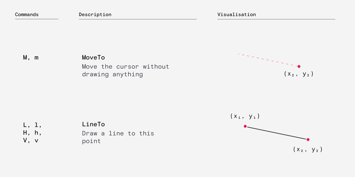 Path data is made up of 6 types of instructions that tell your computer how to draw the shape: