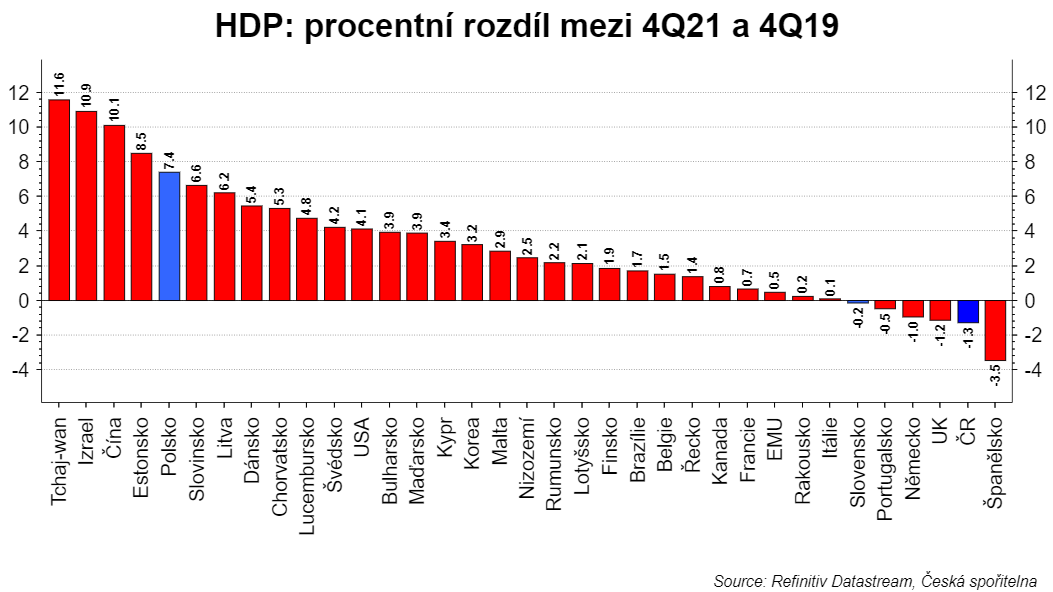 Ale co, ve finále jde přece o byznys, o ekonomiku, že jo. Tu přece dokázal řídit víc než zdatně. Ano, ke druhému nejhoršímu výsledku v Evropě. Na konci roku 2021 jsme byli pořád pod úrovněmi z konce 2019. Například už dávno Polsko +7,4%. Není to ani dobrý byznysman!