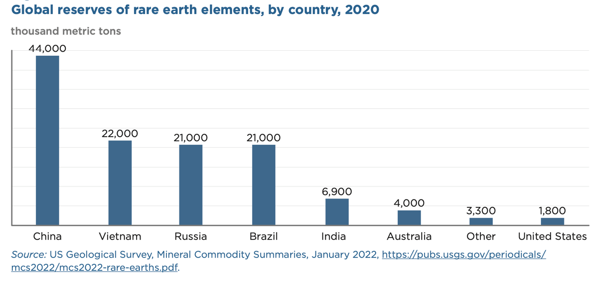 Na rozdíl od předchozích surovin má Čína značnou kontrolu nad těžbou i zásobami vzácných zemin.