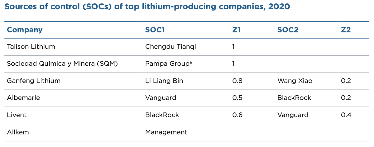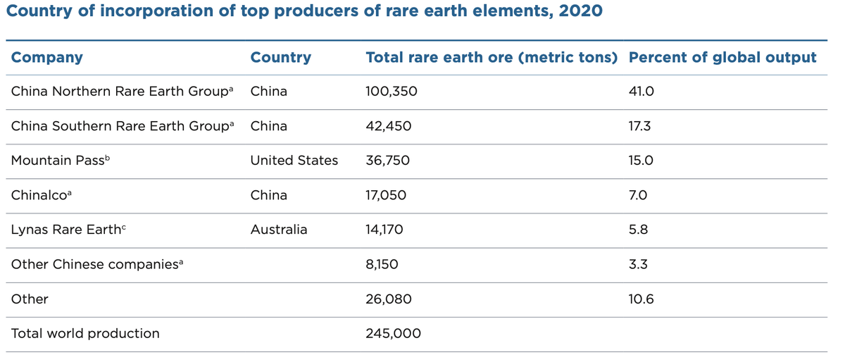 Z toho co lze rozklíčovat, tak Čína kontroluje 24% celosvětové produkce. Glencore, firmu s největším podílem na produkci, vlastní rodina Glasenbergů z z Jihoafrické republiky. Podíl Číny se podařilo rozklíčovat na minimálně 24%.