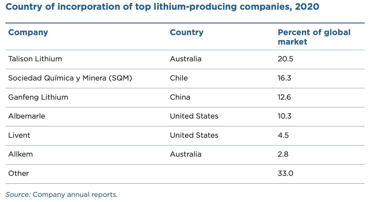 Na rozdíl od kobaltových dolů jsou firmy produkující lithium primárně registrovány tam, kde těží.