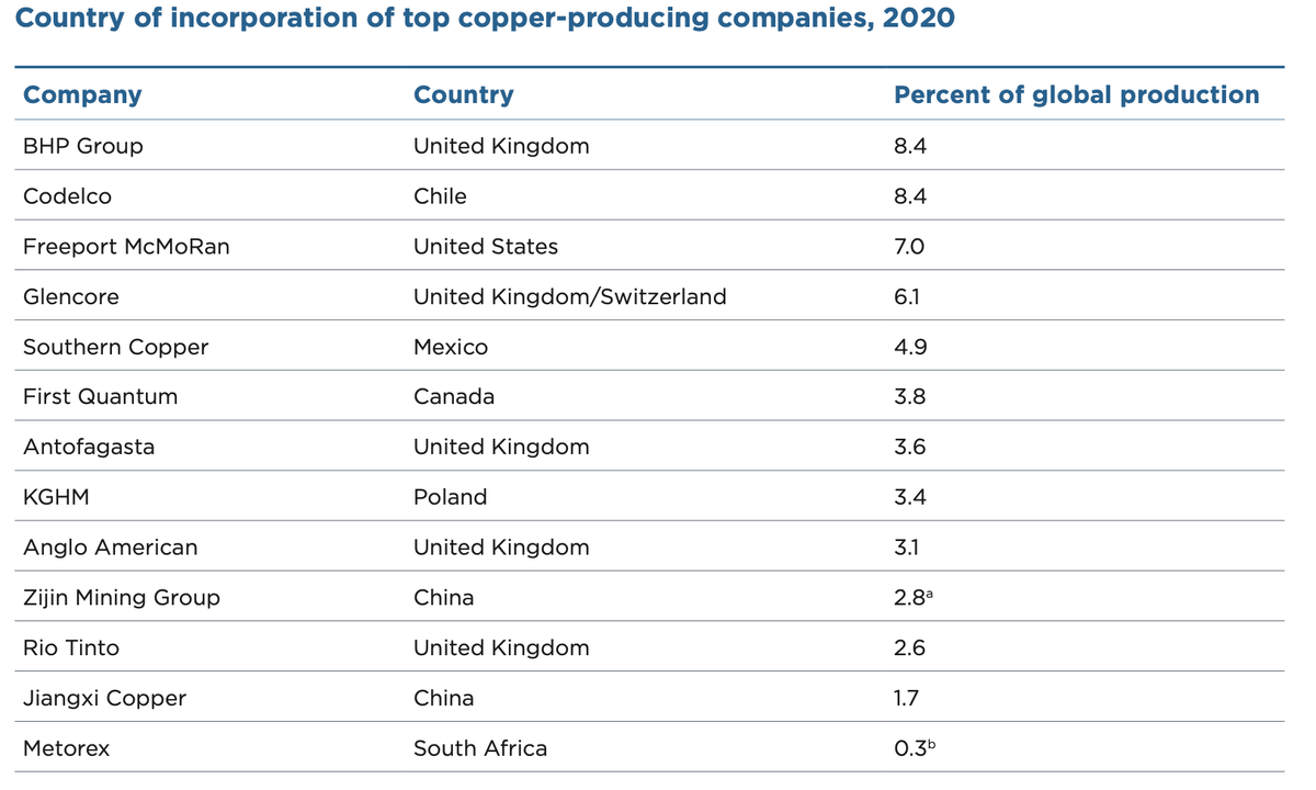 Kdo ovládá největší firmy produkující měď? Na rozdíl od trhu s kobaltem není trh s mědí koncentrovaný. Například Čína ovládá 11% trhu. Je tady i starý známý Glencore.