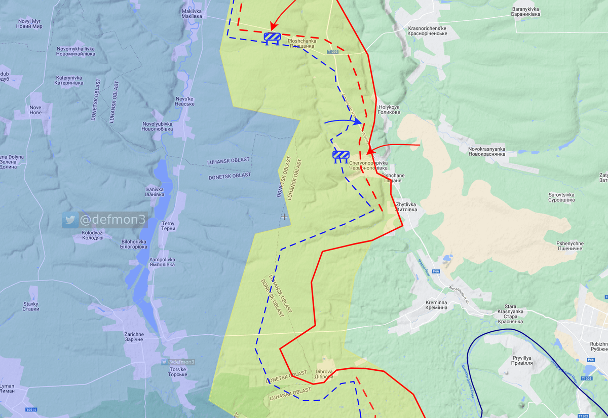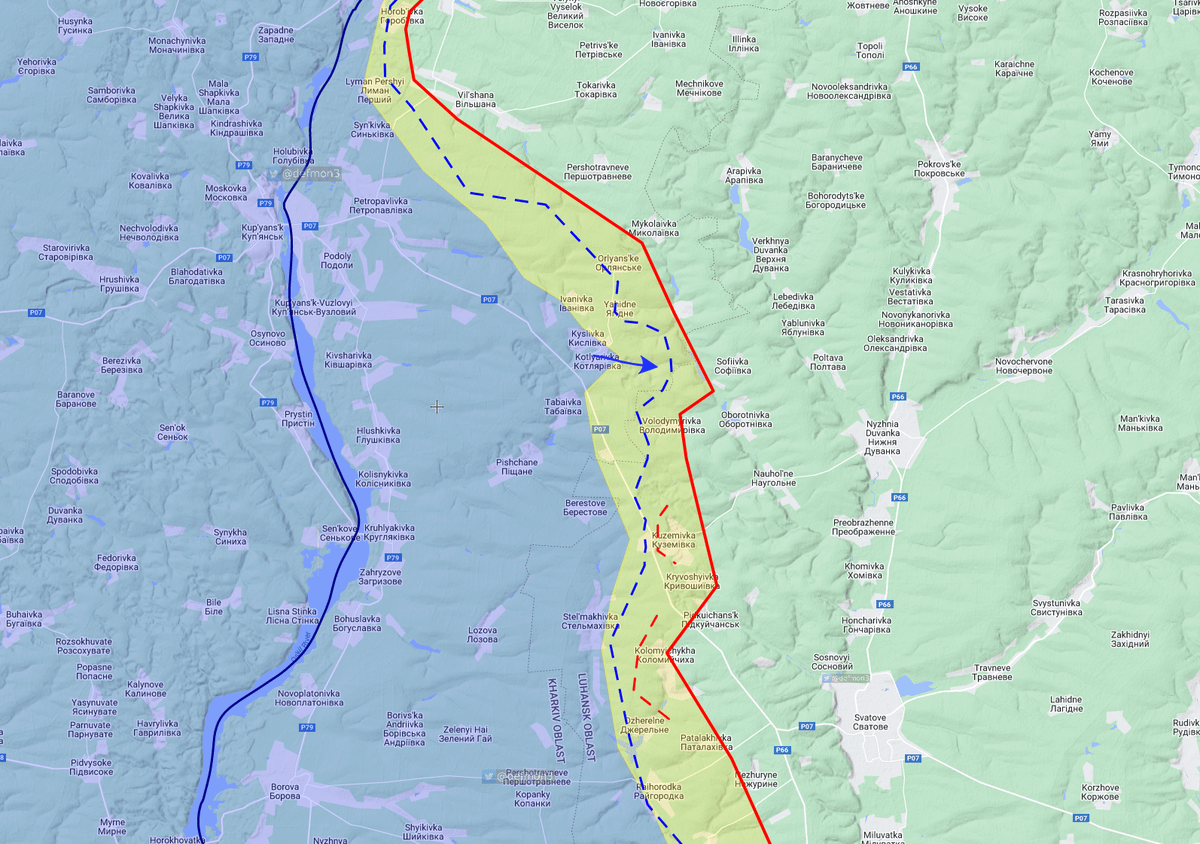 The AFU repulsed attacks around Chervonopopivka and Ploshchanka. Wargonzo reports the AFU attacked in the direction of Holykove. I think the AFU are continually progressing at a slow pace in this area.