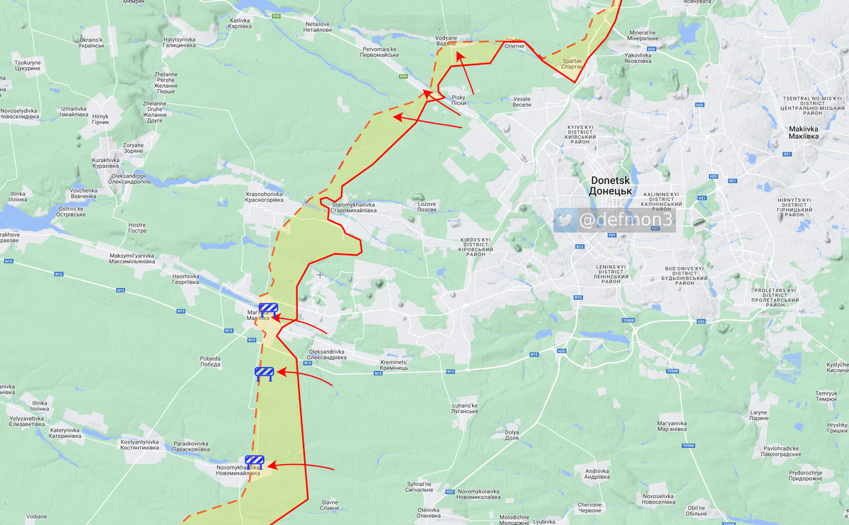 The AFU repulsed attacks around Maryinka, Pobyeda and Novomykhailivka. Wargonzo reported additional RU attacks in the area of Vodyane, Pervomais'ke and Nevel's'ke.