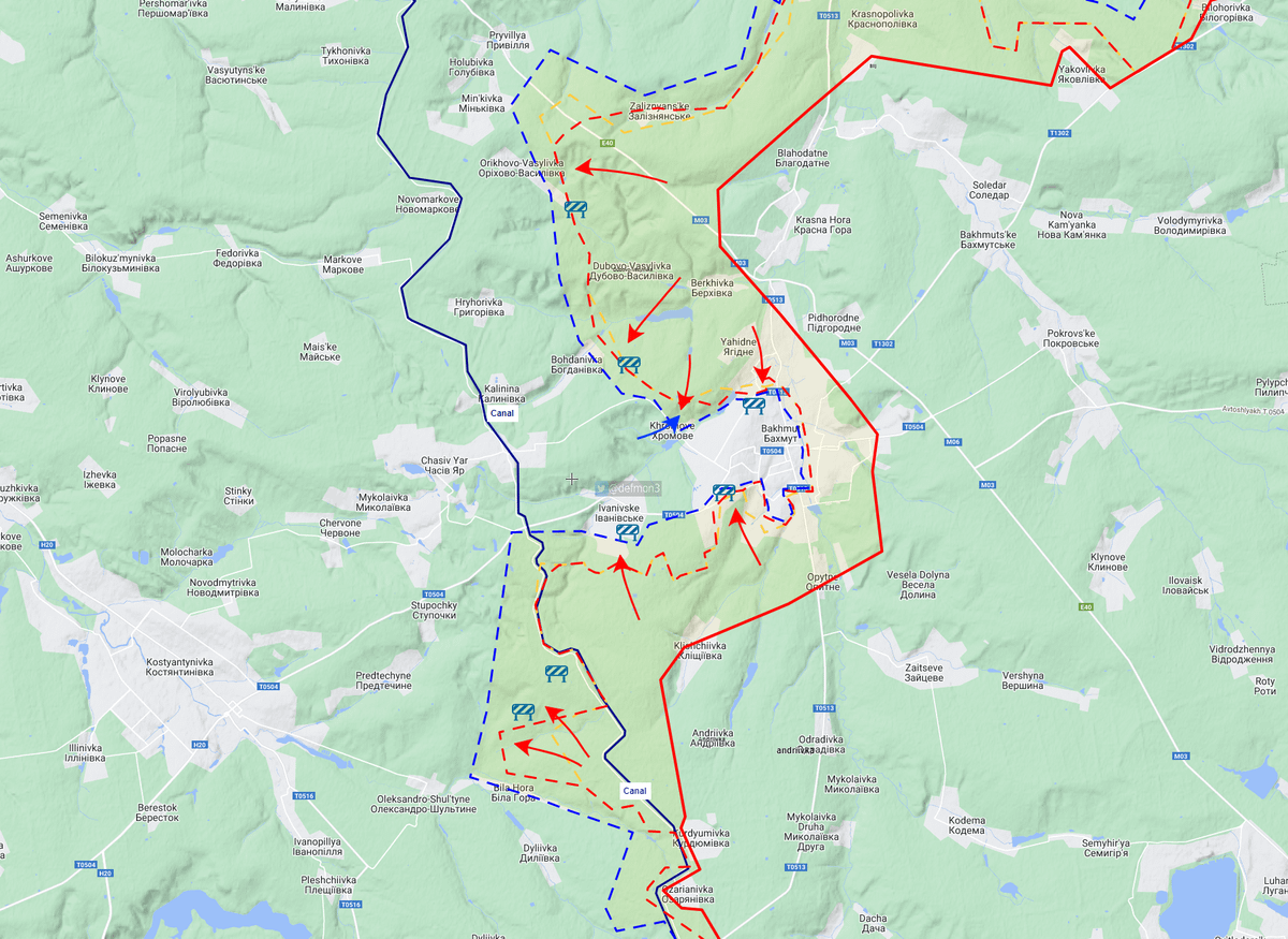 The AFU repulsed attacks around Bakhmut north and south side, Orihovo-Vasylivka, Bohdanivka, Ivanivske, Predtechine and Stupochky.