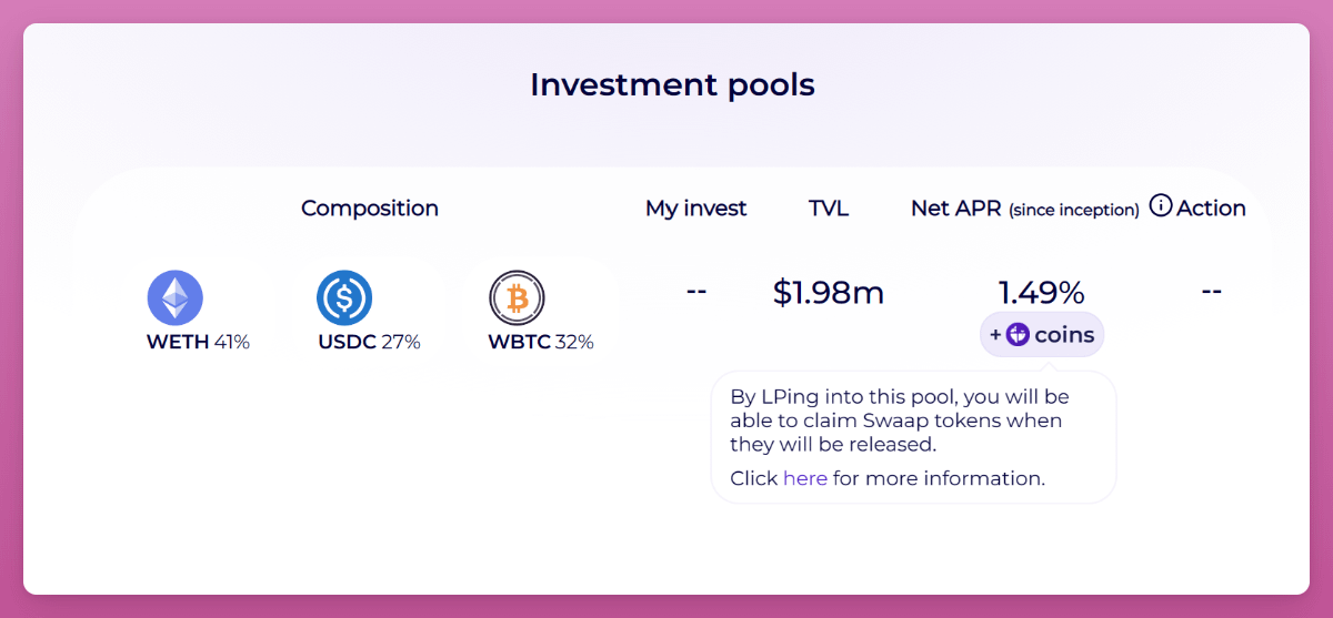 The Swaap v1 launched in July, recorded less than <1% IL for WBTC/WETH/USDC pool.
