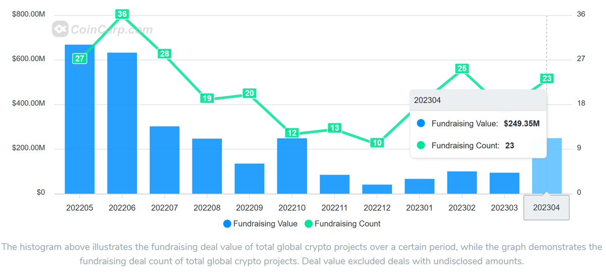 23 DeFi projects managed to raise funds last month, accounting for $249M USD, which is 2.5x the amount raised in March!