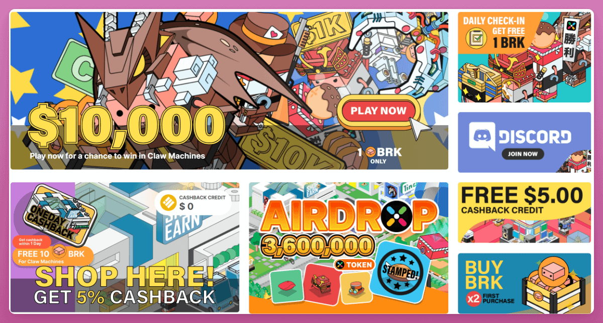 First, it's a metaverse platform where users buy & spend $BRK to play with claw machines.