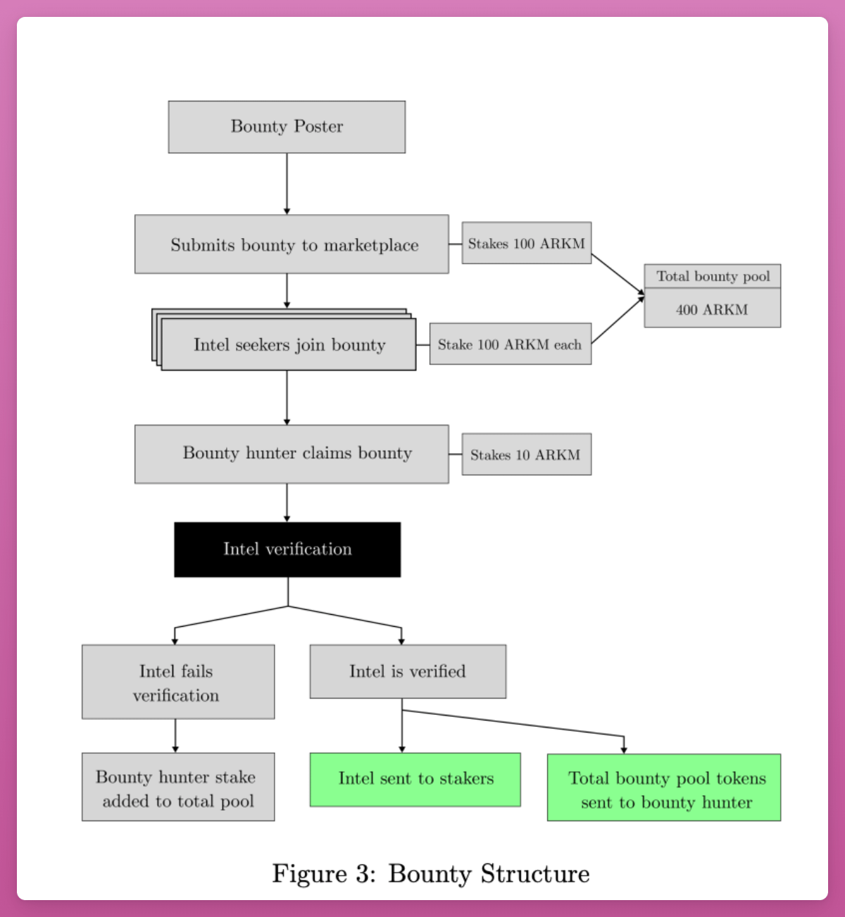• Staking: Bounty hunters stake 10 ARKM to deter spam.
