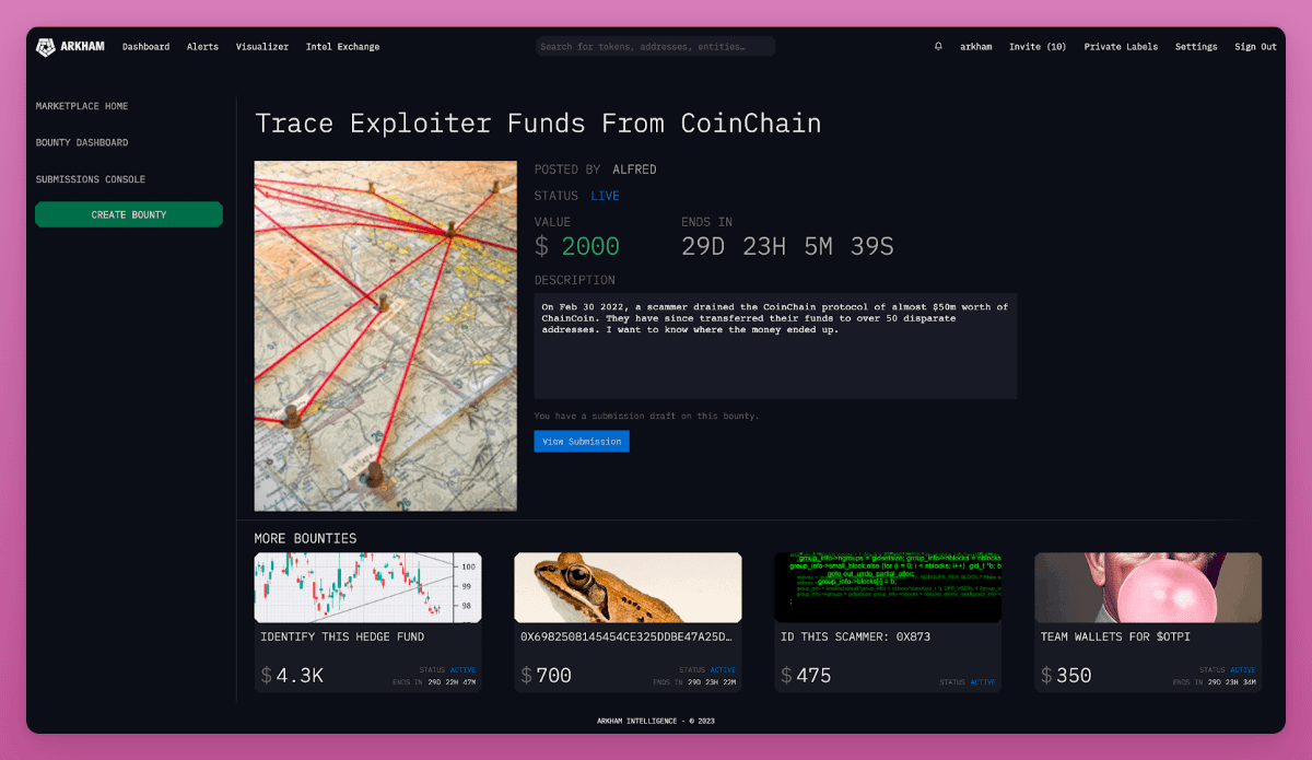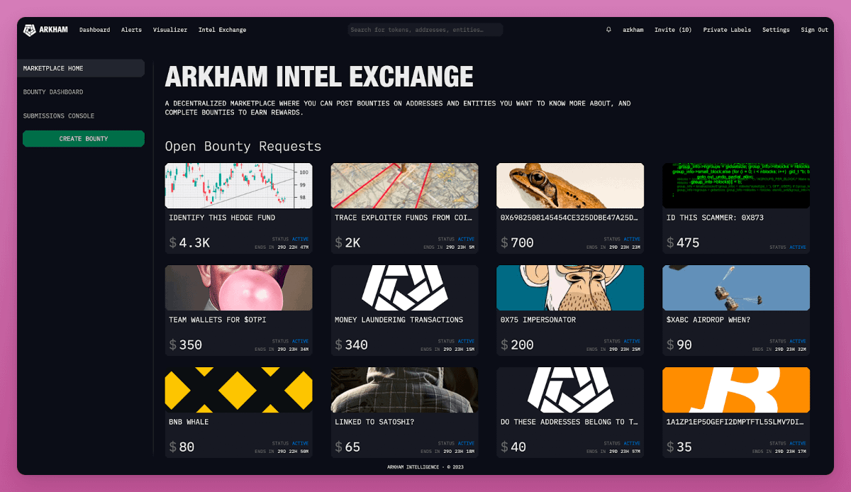 Arkham announced the first "intel-to-earn" on-chain marketplace.