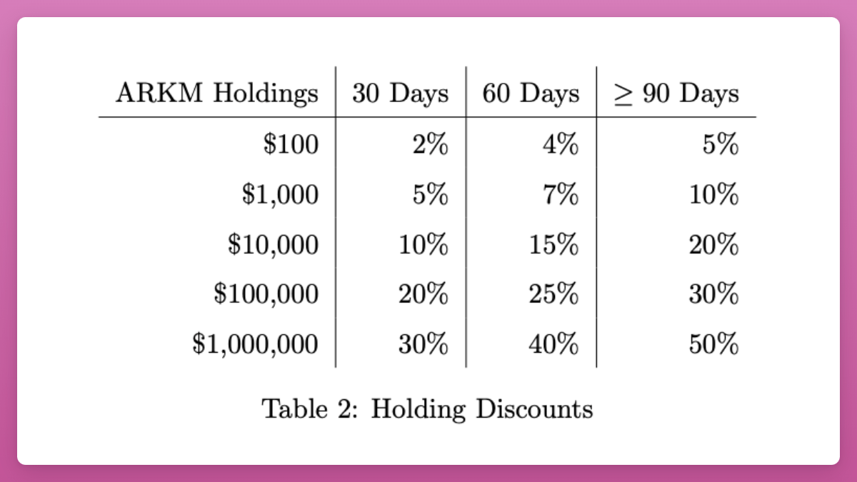 2. Holding Discount: Up to 50% discount for holding ARKM, based on the size and duration of the holding.