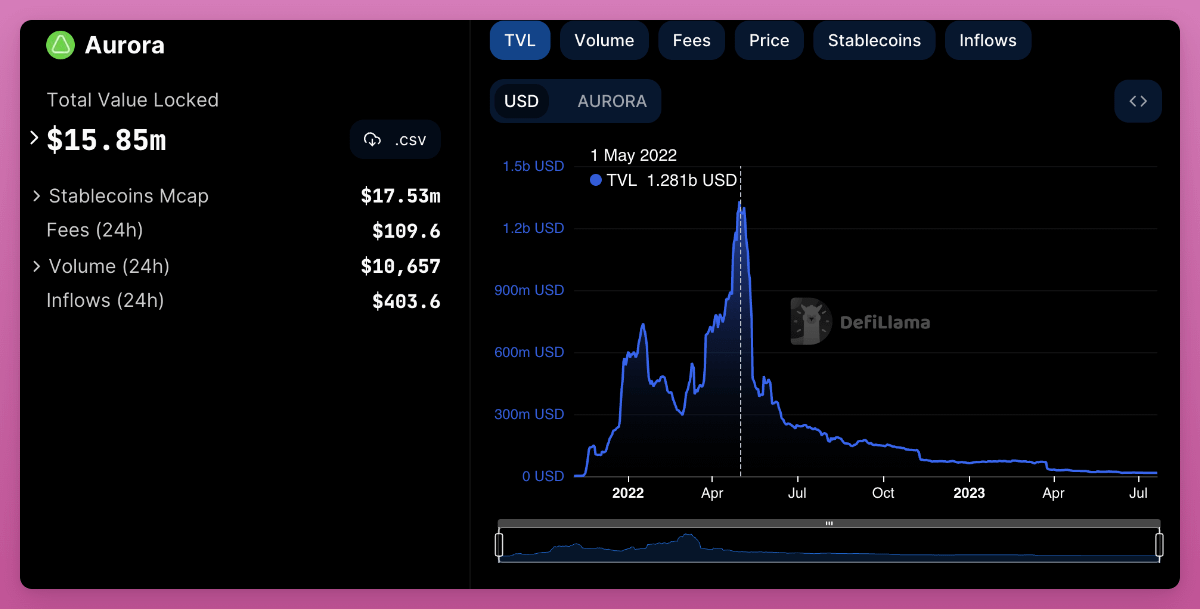 Near's Aurora had a blast in 2022, reaching $1.28B USD in TVL.