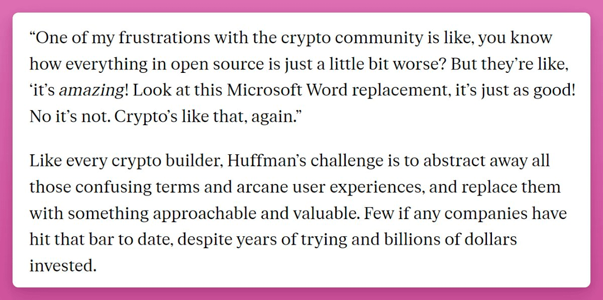 Most crypto apps put "crypto" itself at the core of their value proposition.
