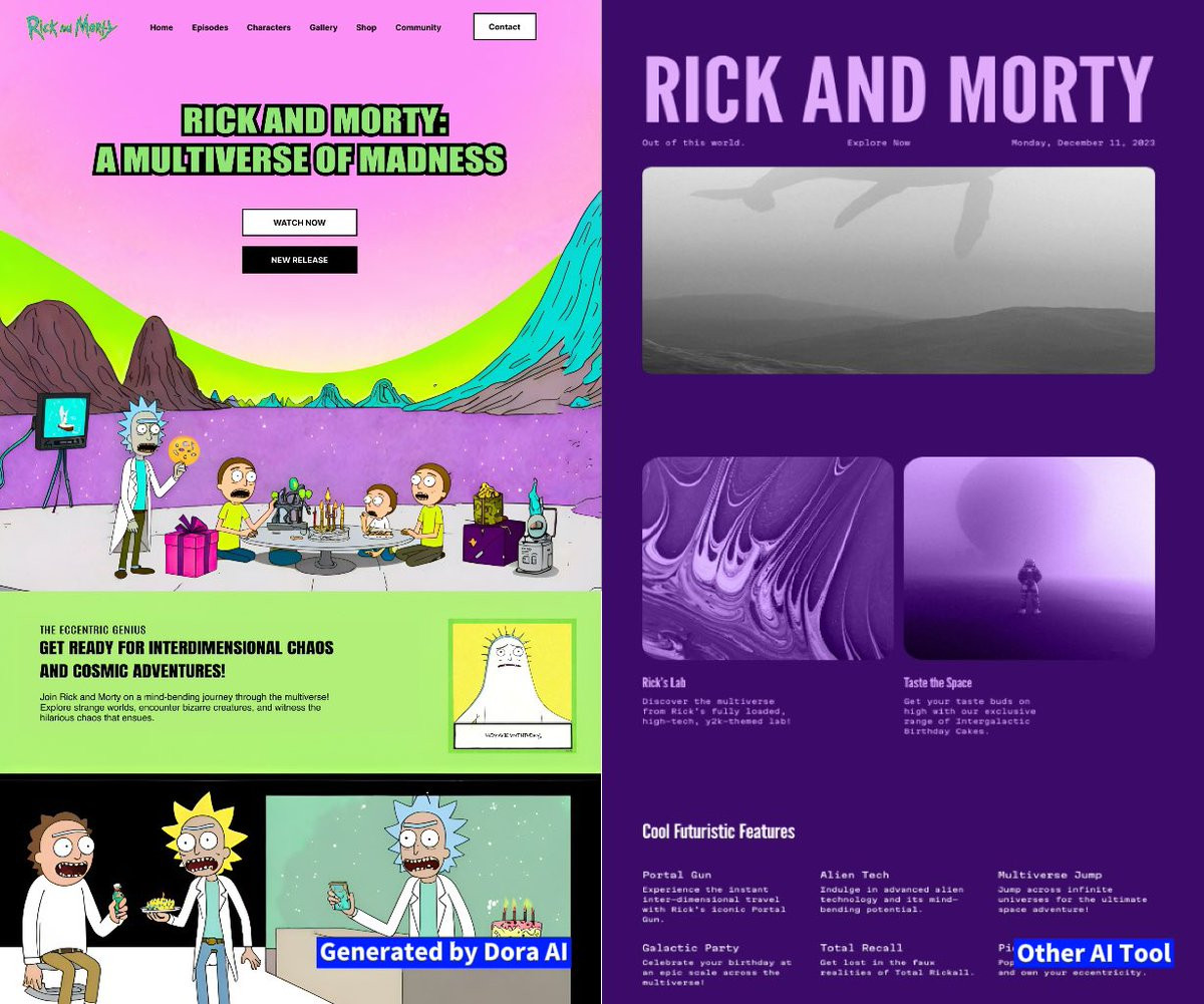 See the difference between websites generated by Dora AI and other AI tool.