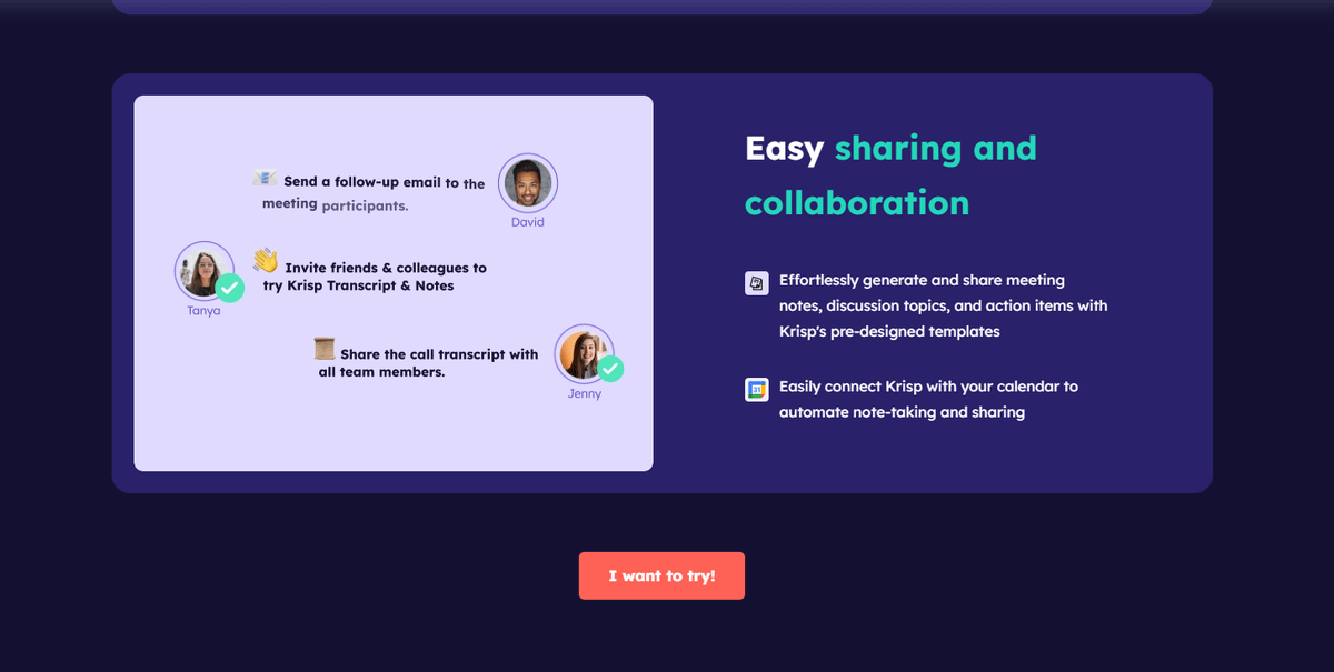 Krisp takes notes and summarizes online meetings automatically, making sharing a breeze.
