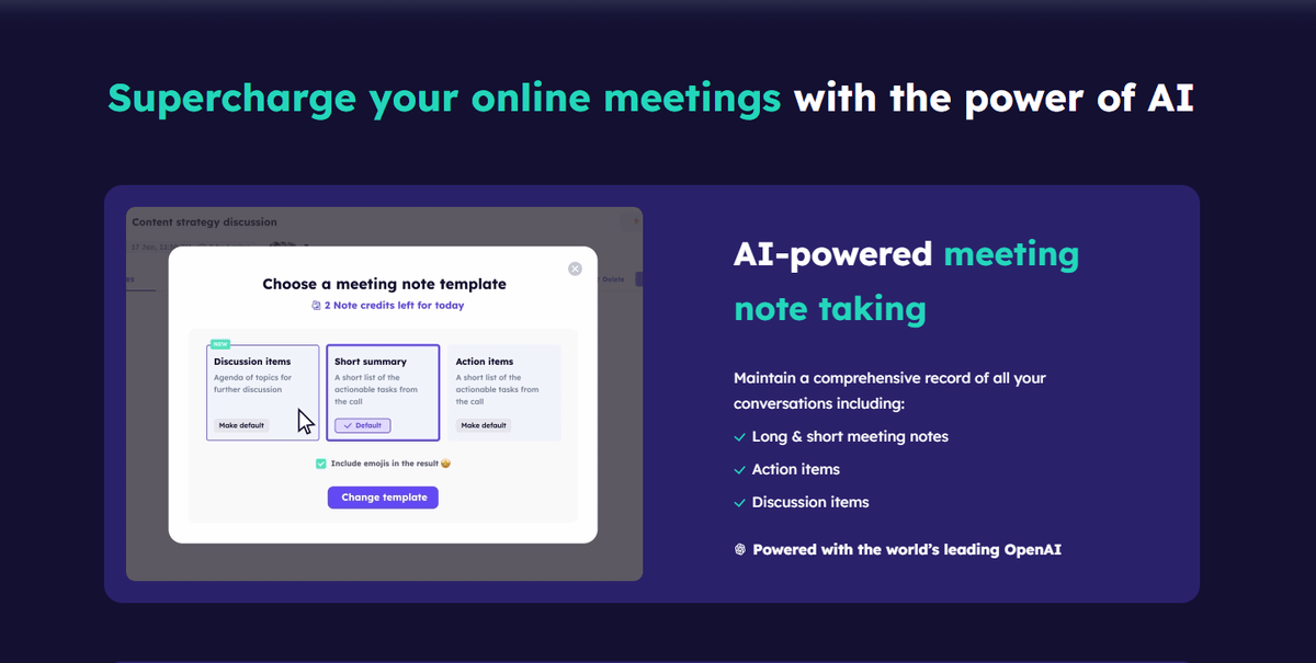 Generate and share meeting notes, discussion topics, and action items effortlessly with Krisp's pre-designed templates.