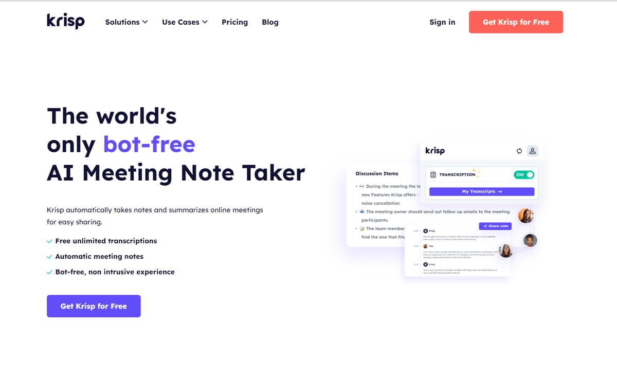 Krisp's distraction-free solution helps you capture crucial details in today's information-filled world with ease.