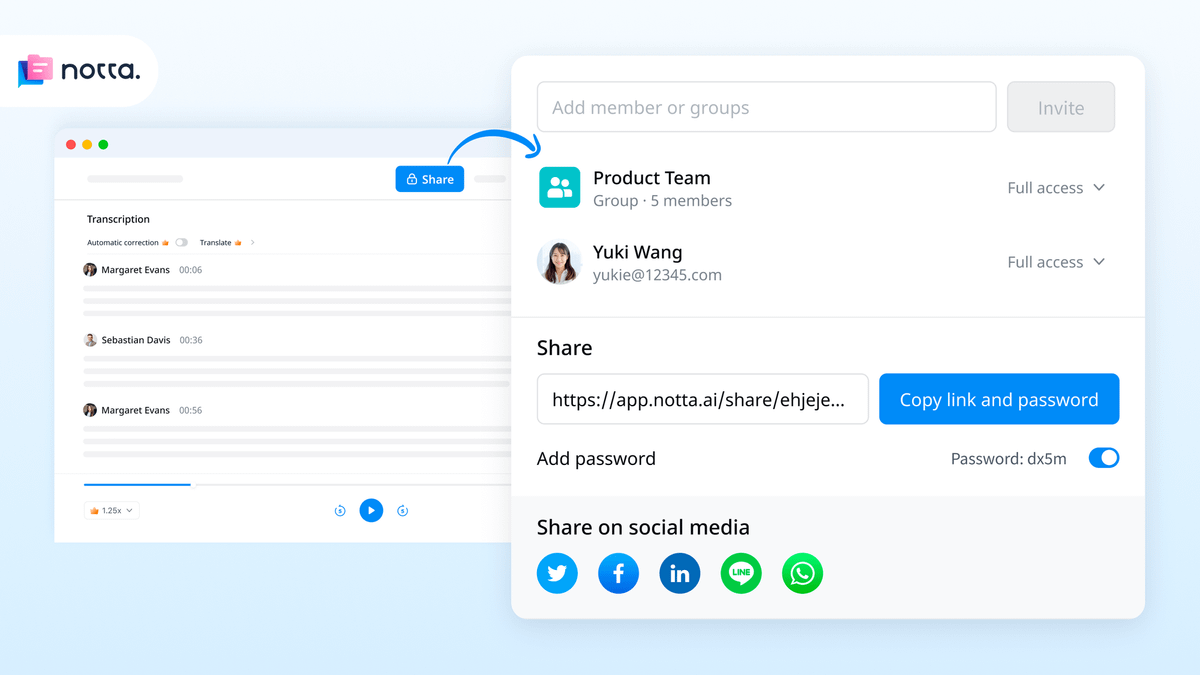 Share meeting notes with all members in your workspace for collaboration and quick sync.