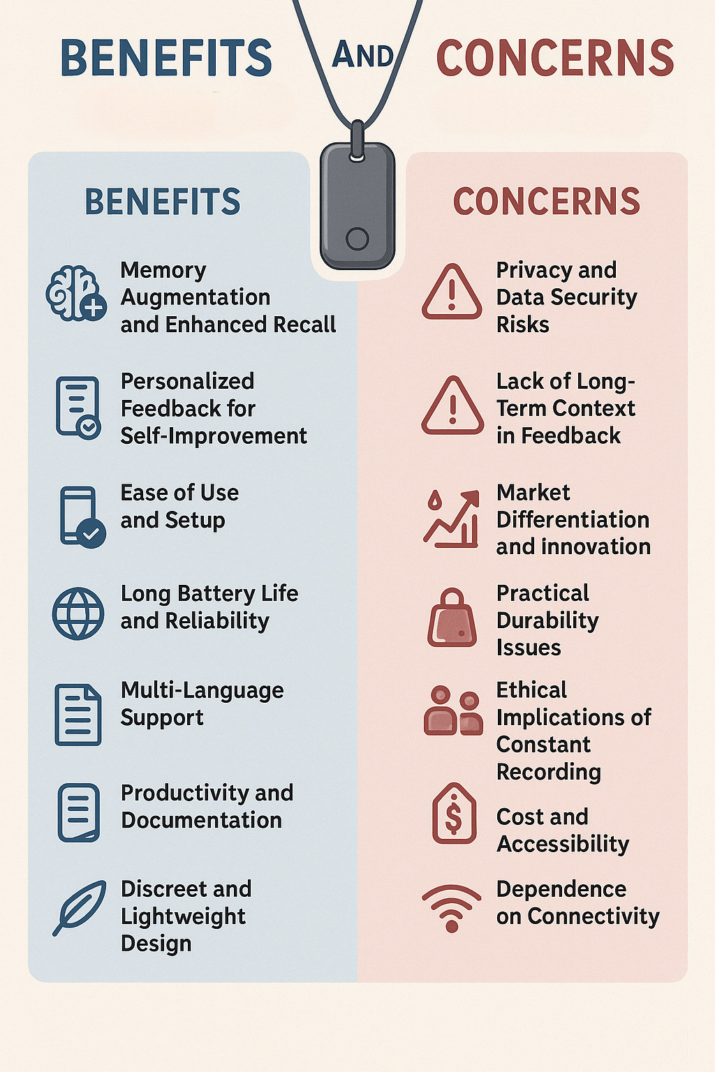Here’s a summary of benefits and concerns relating to AI pendants like this one. They’re all extracted from the discussion in the original X post. Yes, I did use GenAI to help prepare this. But at least you know that.