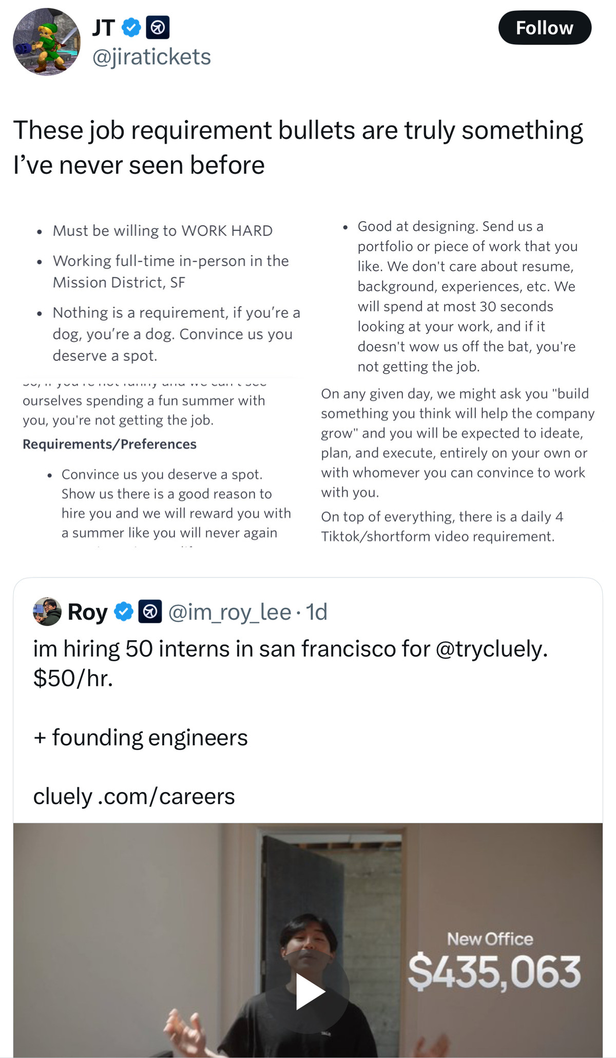 What’s the latest fun at Cluely, the well-funded and difficult to detect tool that its creators say will help you to cheat in academic work, job interviews, sales calls and other situations? The team is now recruiting 50 interns who they say will be paid $50 per hour #academicintegrity
