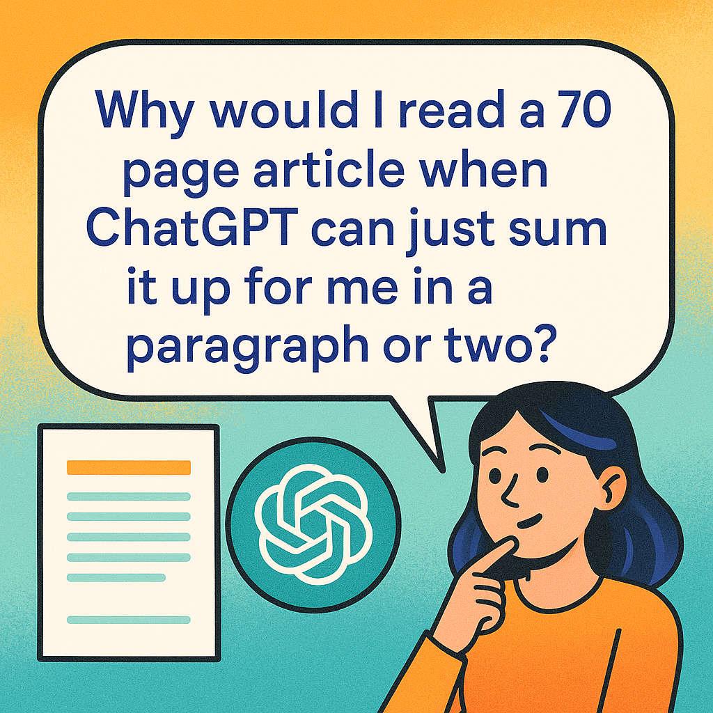 “Why would I read a 70 page article when ChatGPT can just sum it up for me in a paragraph or two?”