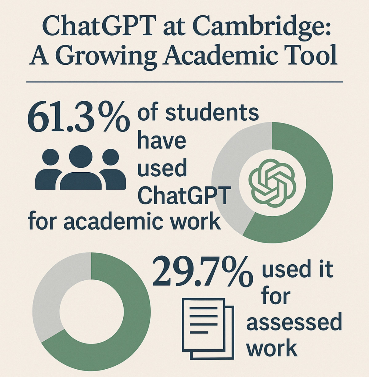 A new survey reveals that 61.3% of Cambridge students have used #ChatGPT to assist with academic work. 29.7% of students have used ChatGPT to assist with assessed work. This is likely a distinction that means little at many universities, where almost all academic work is assessed.