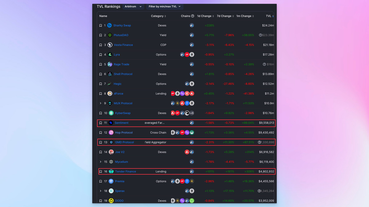 🔹 ตัวอย่าง: หาเหรียญน้ำดี ภายในเชน Arbitrum สาย DeFi คงเข้าใจอยู่แล้วว่า dApps เจ้าเก่า เจ้าดัง จะเป็นรูปแบบ multichain ถ้าเรานำตัวอย่างเทรนด์ตอนนี้คือ Arbitrum