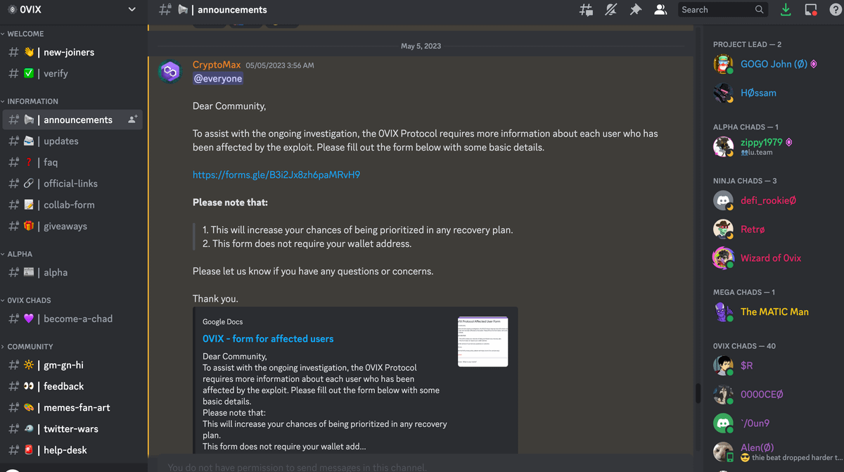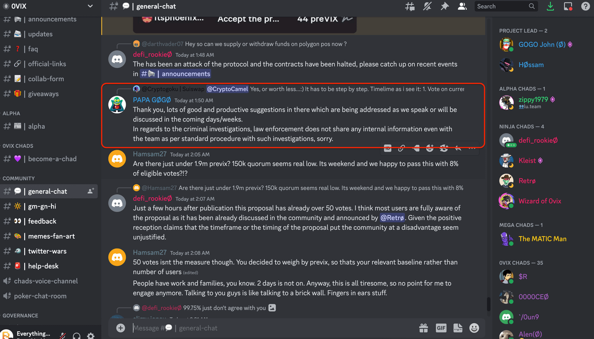 This raises doubts about the intentions of the OVIX team and their commitment to fair governance
