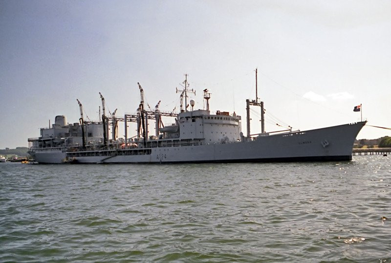 RFA Olmeda arrives back at Devonport after 96 continuous days at sea. In this time, she has covered 30,000 miles and supplied 185 ships with no less than 64,000 tons of fuel and diesel oil. One of the unsung heroes.