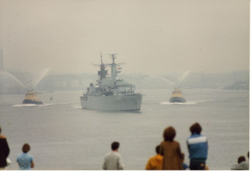 HMS Brilliant returns from the Falklands a joyous welcome and "Brilliant Work! Welcome Home Boys!" Also this message from her sister ship: