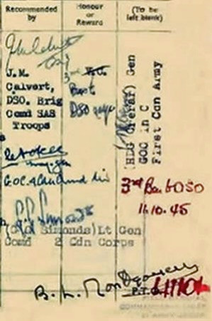 However, although the VC recommendation was signed by Field Marshal Bernard Montgomery, commander of the Allied 21st Army Group, Mayne instead received a fourth DSO.