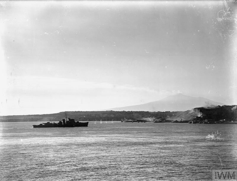 The landing was not completely unopposed - with both small arms and fire from a shore battery. Ulster Monarch was anchored just off Izzo Point, at the southern tip of Mount Tauro east of Augusta, and was right under the bluffs where battery AS674 was sited.