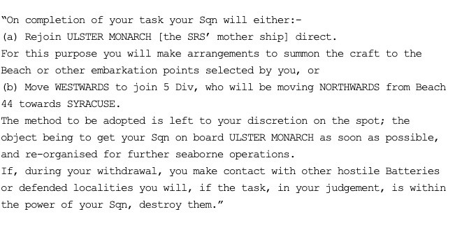 “The main task being successfully achieved the Squadron assembled at Farm DAMERIO and Major R.B.Mayne, D.S.O decided to push North-westwards and attack C.D. [coast defence] Battery which had opened fire on us.”