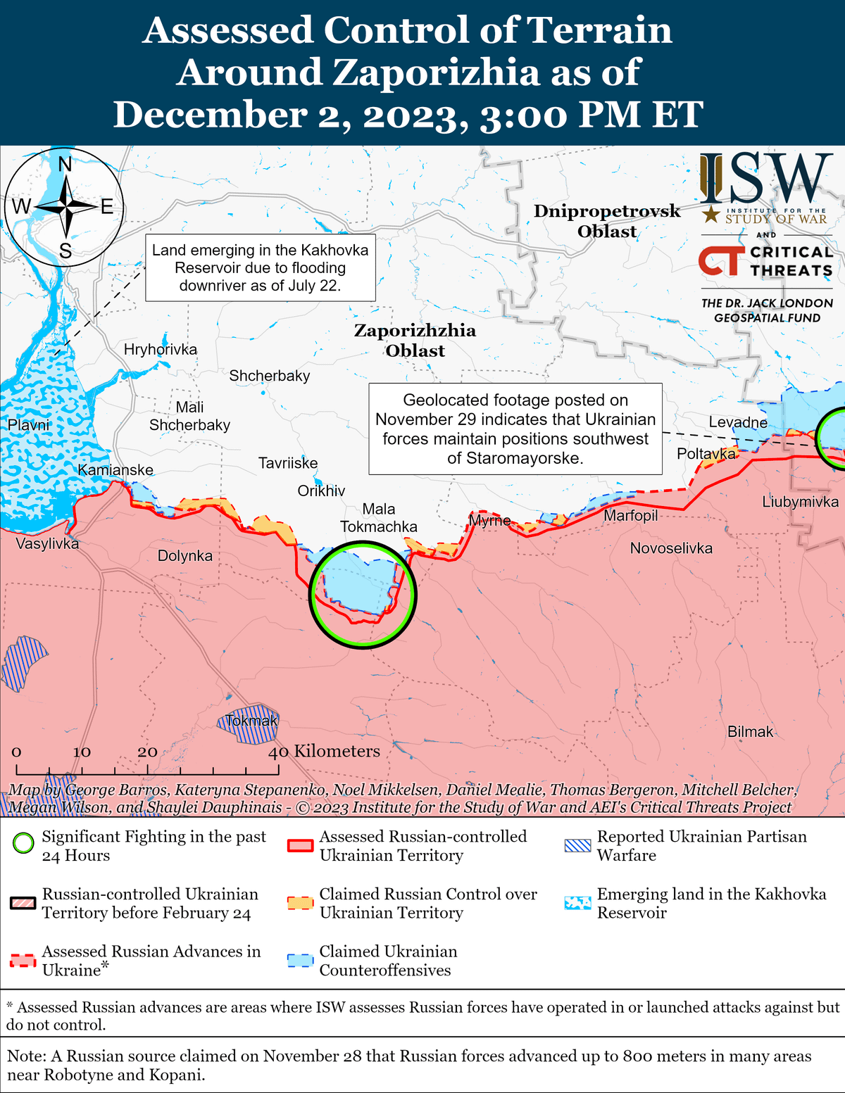 Ukrainian forces continued counteroffensive operations in western Zaporizhia Oblast on December 2 but did not make any confirmed advances.