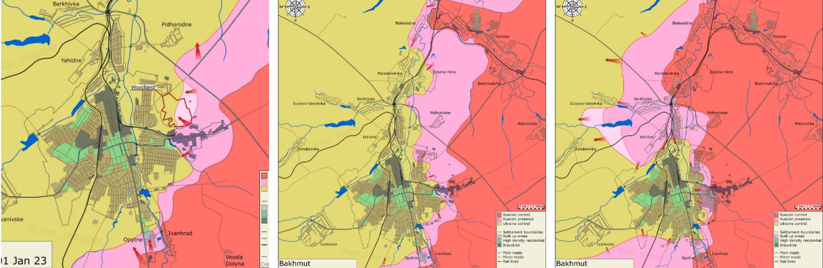 Despite the very large number of casualties suffered by the Russians, they have slowly but surely begun to take ground in and around Bakhmut. This is strangling (but not yet stopping) the Ukrainian capacity to defend the city.