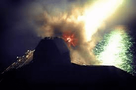 Just off the coast of east Falkland Island, and a little after midnight, HMS Arrow and Active use the Berkley Sound gun line to harass targets at Moody Brook and Sapper Hill. Arrow had shot 902 shells but this was her last engagement.