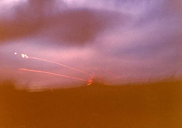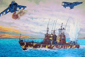At 9.47pm flashes where seen in the Fitzroy area by Fearless, Minerva and Penelope with the latter having to take evasive action firing chaff, Seacat and Bofors at a target which appeared as a bright glow and a trail.